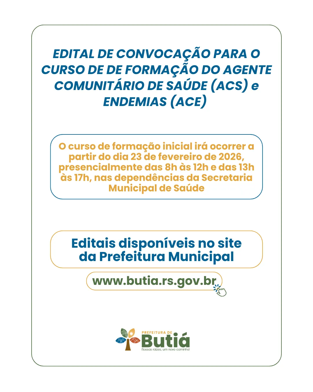 Convocação aberta: curso de formação para Agentes de Saúde (ACS) e Endemias (ACE) de Butiá